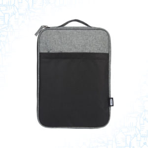 Custodia per Ipad e tablet in poliestere 300D R-pet imbottita. Tasca principale con chiusura a zip e tiretto in metallo.…