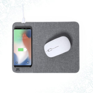 Tappetino mouse con caricatore wireless per cellulari. Questo prodotto è in poliestere R-pet, che riduce drasticamente il consumo di energia.