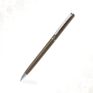 Penna con corpo in canna da zucchero. Clip in metallo e finiture cromate. Meccanismo a rotazione e inchiostro blu. Con…