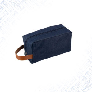 Beauty case in Denim (Jeans), dettagli in PU, chiusura lampo, manici corti per il trasporto
