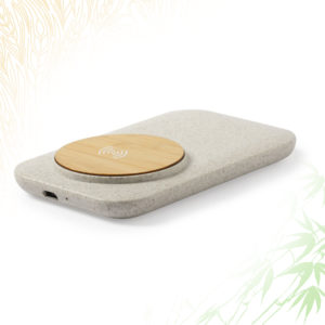 Caricabatterie wireless realizzato in bamboo e fibra di grano, al fine di promuovere l’uso di materie prime naturali e ridurre…