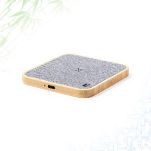 caricatore wireless fatto con parti in Rpet e parti in bamboo. potenza di ricarica 15W. Per ricaricare i tuoi cellulari…