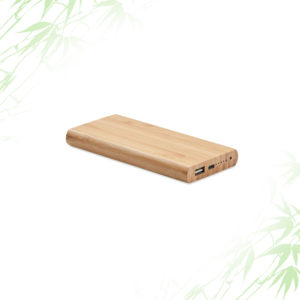 Power Bank da 6000 mAh in bamboo. Corrente di uscita DC5V/2A. Include spia luminosa e cavo USB con spina di…