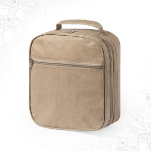 Borsa termica fatta in carta riciclata. Con due scomparti indipendenti con cerniera e tiretti in metallo. Maniglia di trasporto rinforzata…