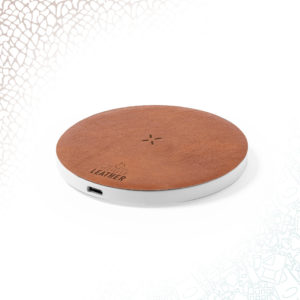 Caricatore wireless fatto con parti in plastica riciclata e parti in pelle riciclata. Potenza di ricarica 15W. Per ricaricare i…