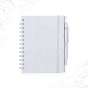 Set composto da taccuino e penna. Taccuino ad anelli con copertina rigida in estratti di pietra in elegante finitura bianca…