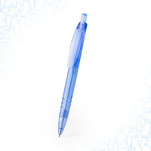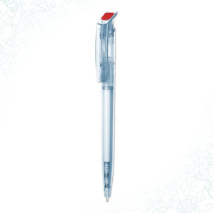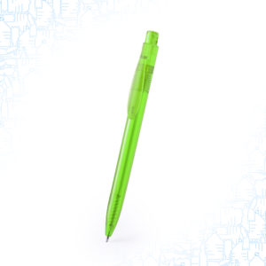 Penna in RPET, plastica riciclata, per favorire il riutilizzo dei rifiuti plastici e aiutare la sostenibilità del pianeta.Finitura traslucida, logo…