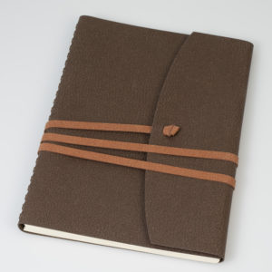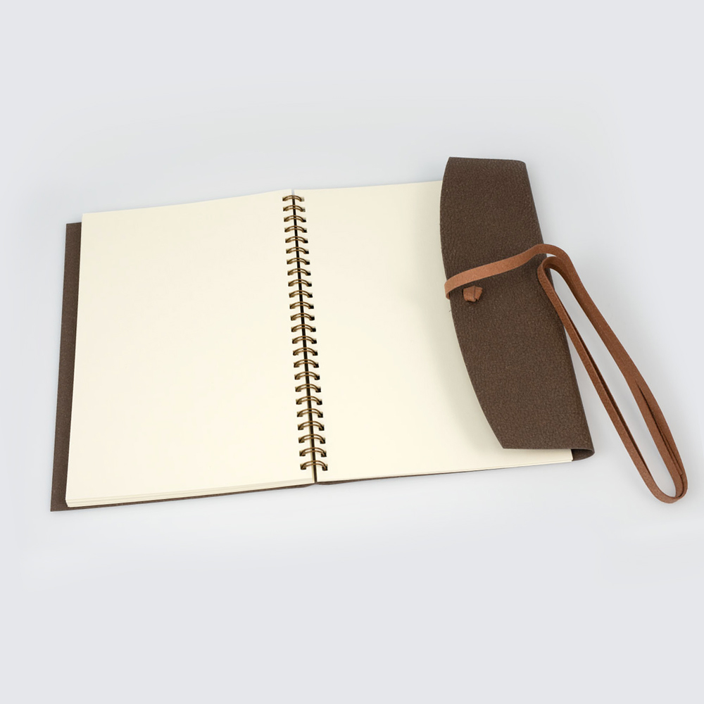Agenda giornaliera o settimanale realizzata in cuoio rigenerato dall’aspetto retrò. Disponibile in diverse tonalità calde e intense e cuoio dalla superficie morbida e irregolare al tatto, che comunica quel senso di vissuto senza perdere di eleganza. Personalizzabile a caldo.