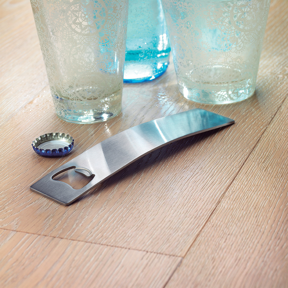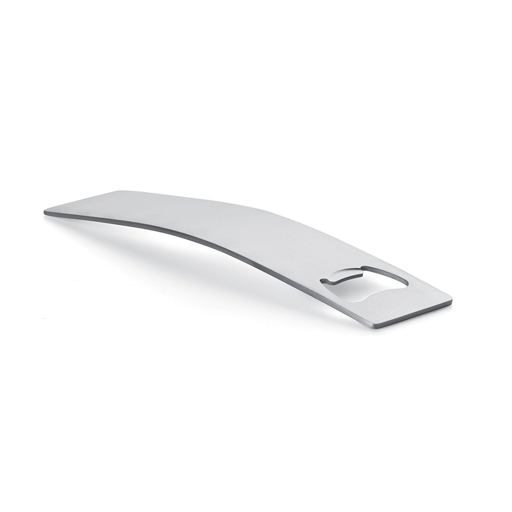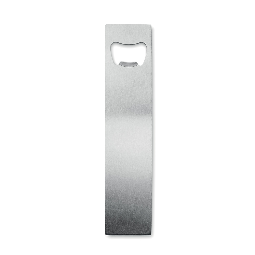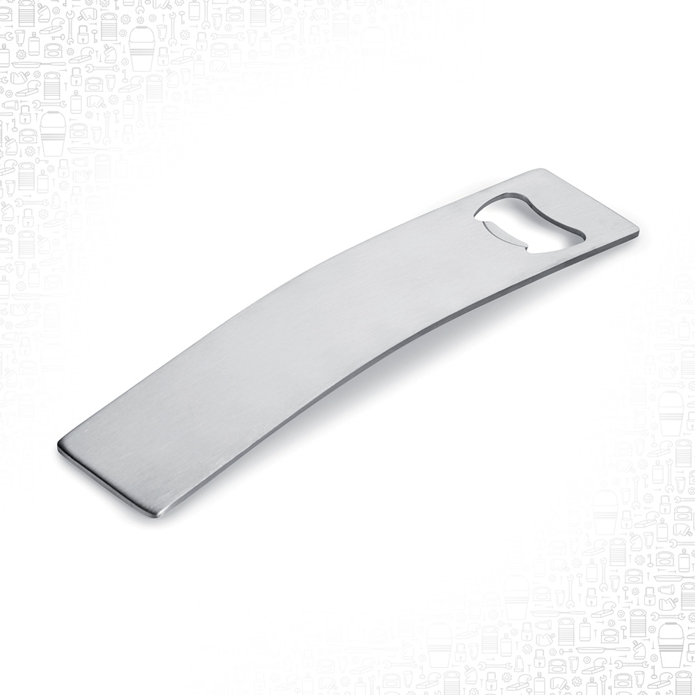 Apribottiglie in acciaio inossidabile. Dimensioni 16cmx3,5cm. Consigliata incisione laser.