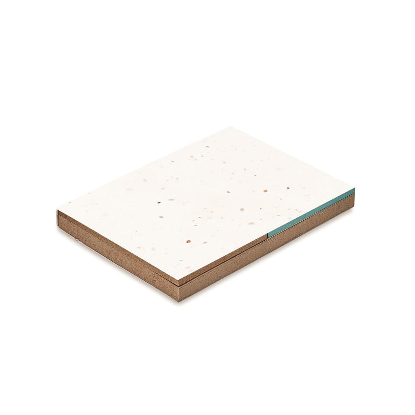 Set memo con copertina di carta semi, 2 set di foglietti adesivi in carta erba e index in carta riciclata. Potete scrivere i vostri appunti e non dimenticare mai le cose da fare grazie a questi stick memo. Una volta terminati tutti i fogli di carta, potete piantare la copertina nel terreno. Crescerà un bel prato fiorito che darà all’oggetto un doppio scopo e avrete un ufficio davvero verde e sostenibile.