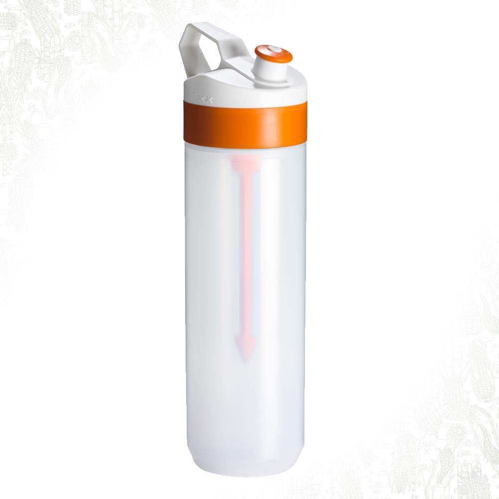 Borraccia in polietilene biodegradabile al 75% che si decompone nella discarica. La borraccia può essere smaltita nei rifiuti della plastica per essere riciclata al 100%. D’altro canto, la bottiglia è biodegradabile. Capacità 450 ml
