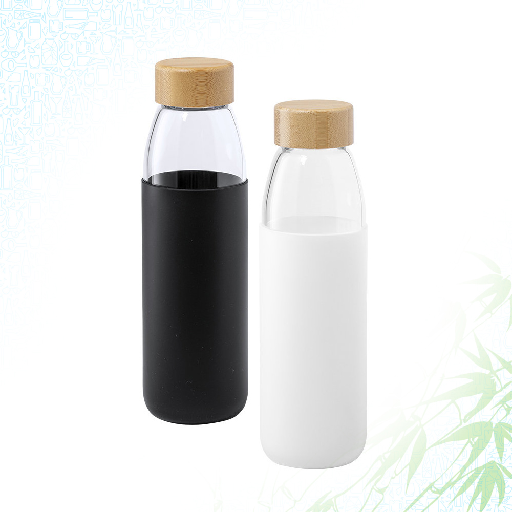 Borraccia da 540ml. Prodotta con fusto in vetro e tappo a vite in bambù.