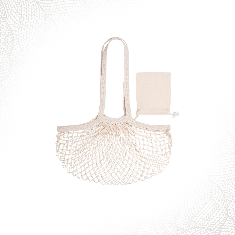 Borsa pieghevole 100% cotone naturale, dimensioni 44×33 cm, con lato a rete. Dimensioni: 40×33 cm