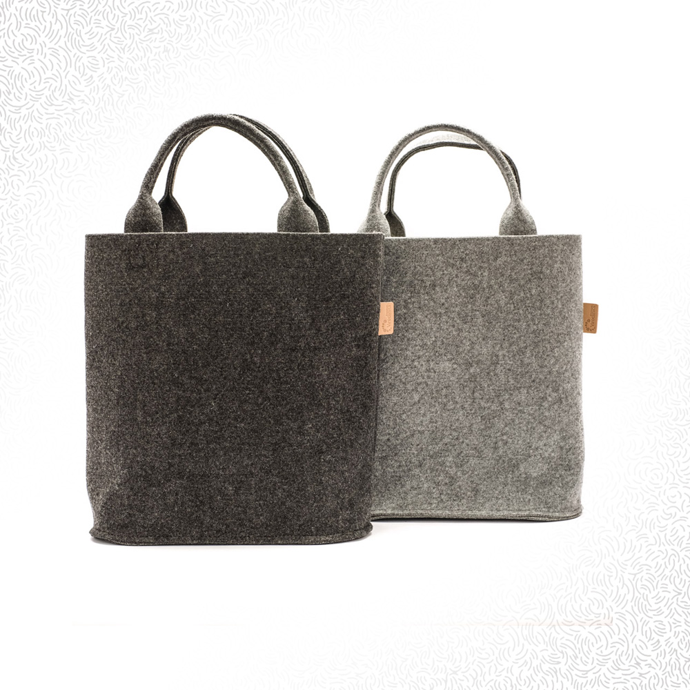 Borsa da shopping in feltro 36x36x18 cm con ampio soffietto e graziosi manici corti.