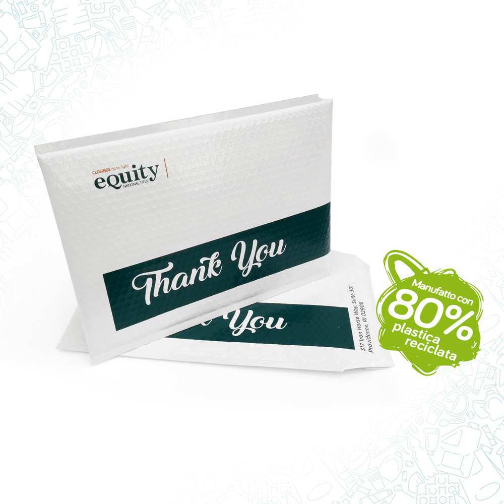 Buste in diversi formati imbottite con pluriball in plastica riciclata per inviare materiale senza pericolo di danneggiarlo. Degli ottimi articoli per spedire e consegnare documenti in sicurezza, ma comunicando il tuo brand prima ancora dell’apertura. Disponibili in vari colori e finiture, sono personalizzabili anche full color.