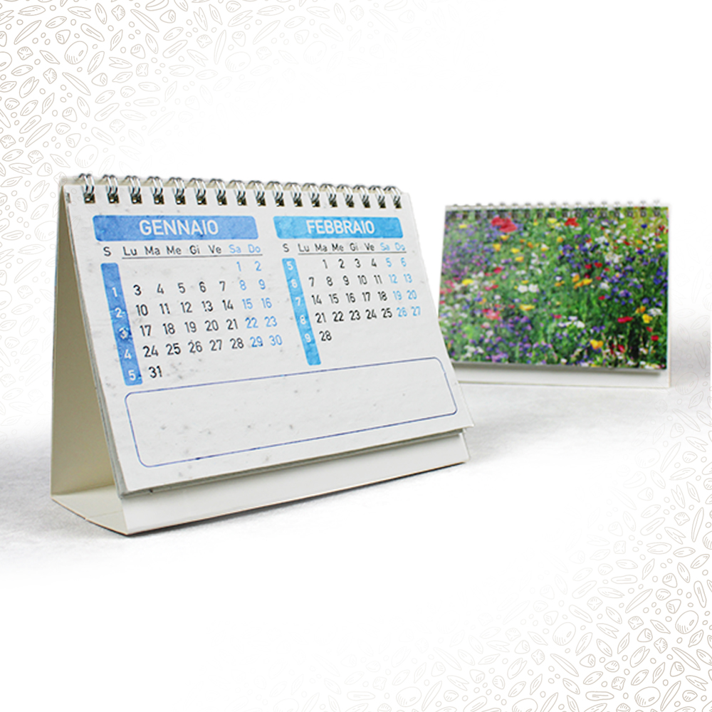 Calendario da scrivania realizzato in carta semi! all’interno della carta sono presenti vari semi di piante fiori o erbe a vostra scelta cosi che potrete “piantare” ogni pagina del mese che toglierete dal calendario stesso!