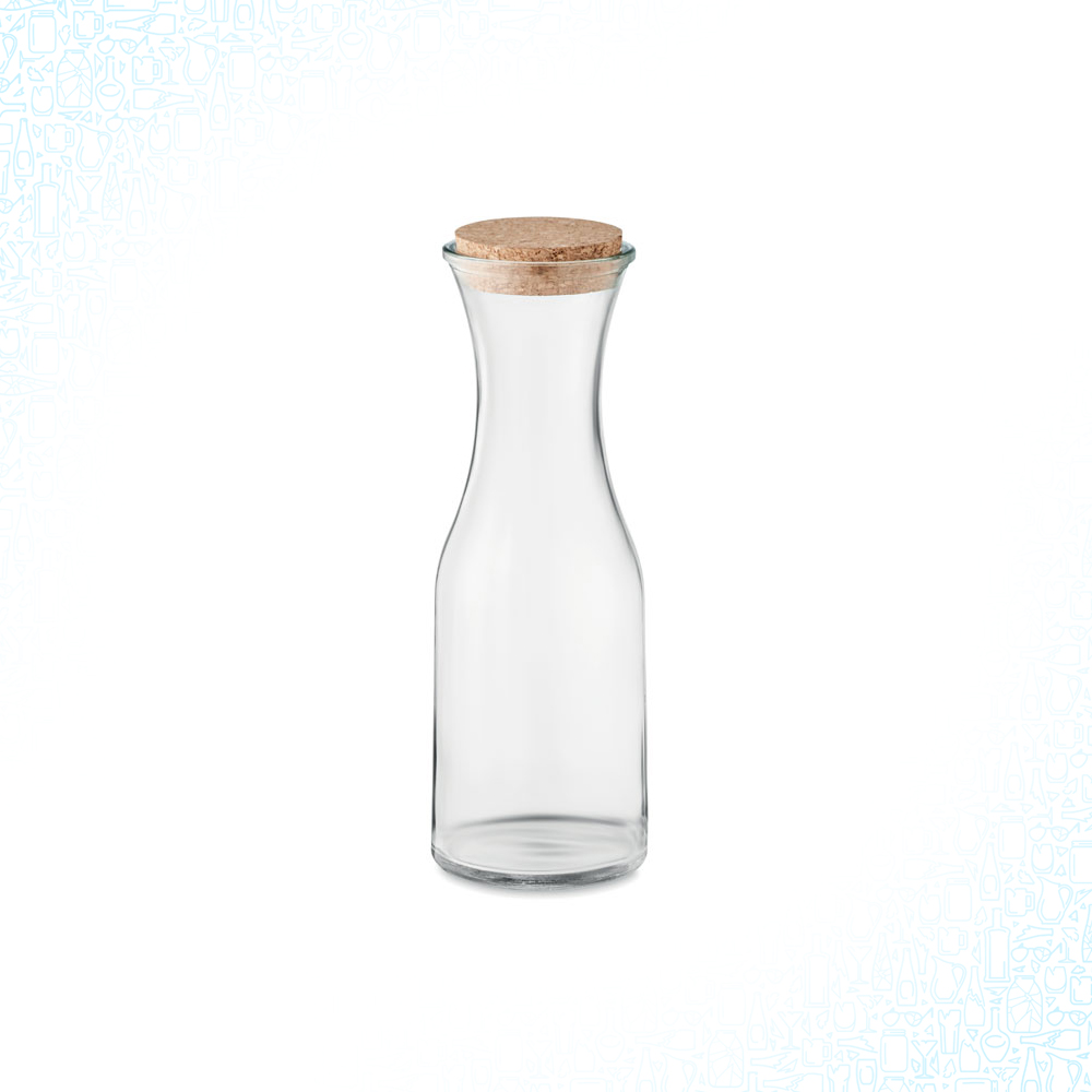 Caraffa in vetro riciclato con coperchio in sughero. Capacità: 1L. Servite delle bevande fresche con questa elegante caraffa di vetro. Il coperchio di sughero conferisce un aspetto naturale. Il sughero e il vetro riciclato ne fanno una scelta sostenibile.