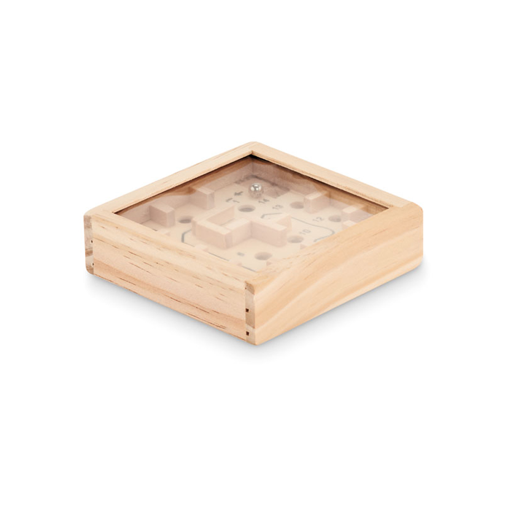 Gioco del labirinto in legno di pino. Ha 14 buche con 1 pallina di metallo. Fate rotolare la pallina lungo il percorso evitando le buche.