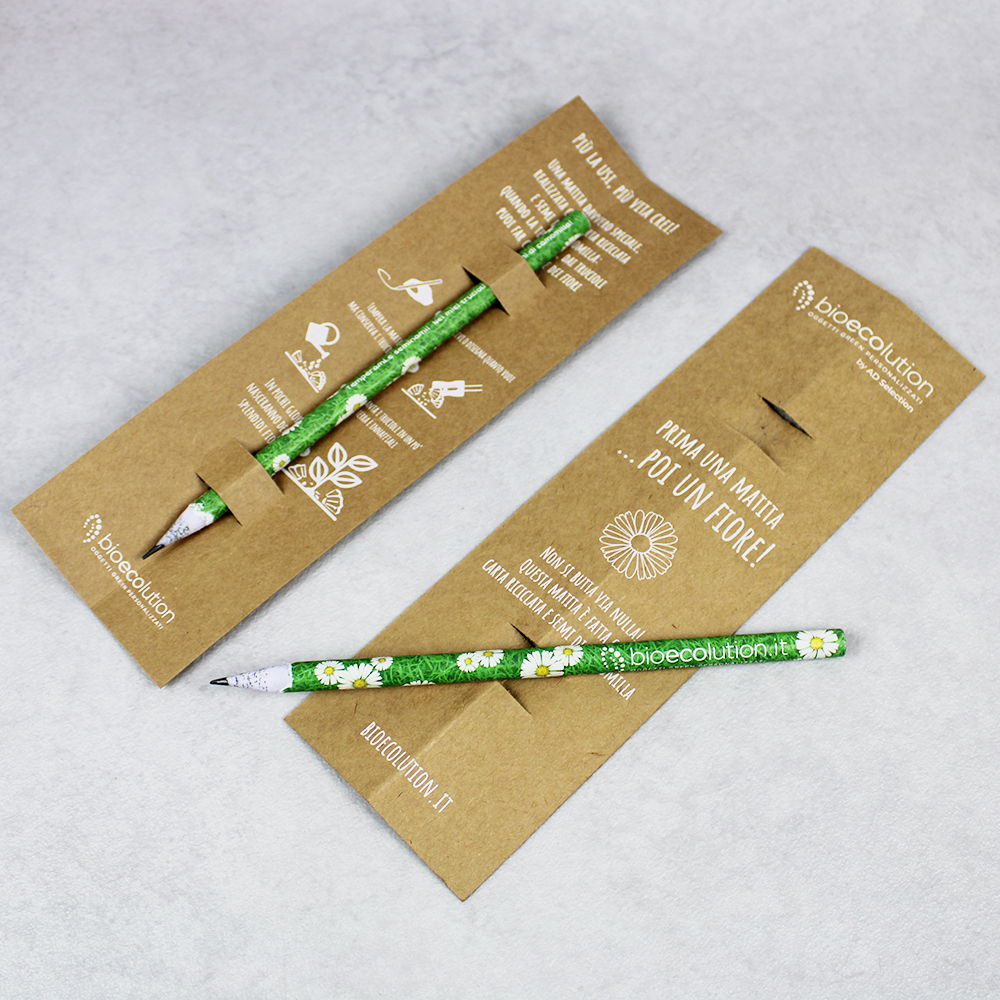 Una matita davvero speciale, realizzata in carta riciclata e semi di camomilla all’interno: quando la temperi, dai trucioli puoi far crescere dei fiori. Più la usi, più vita crei!