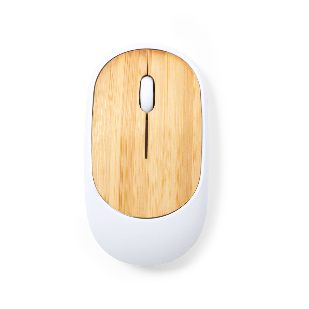 Mouse Wireless ottico. La parte dove le dita toccano i tasti è in elegante bamboo. 1 Batteria AA Non Inclusa