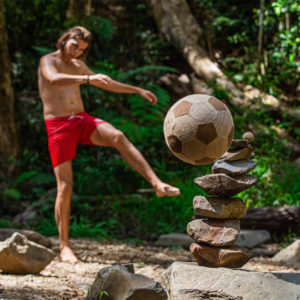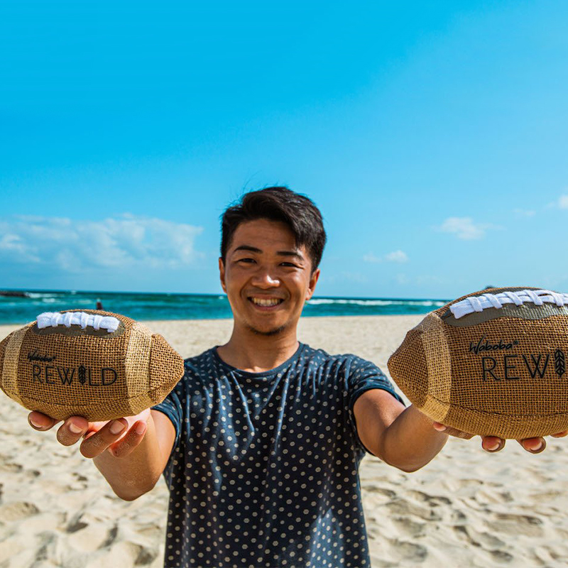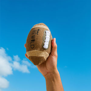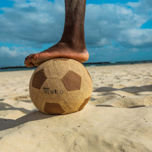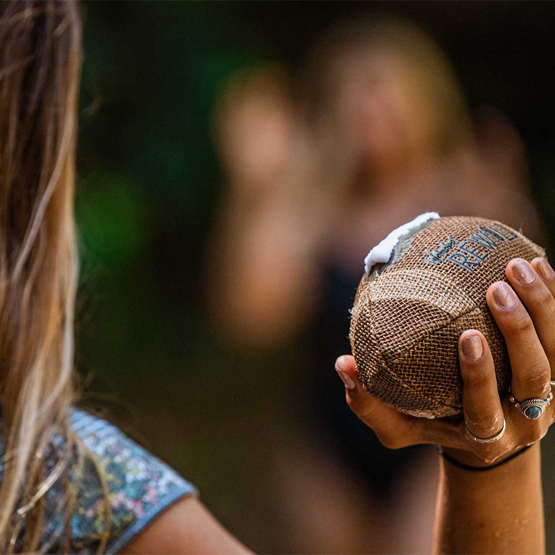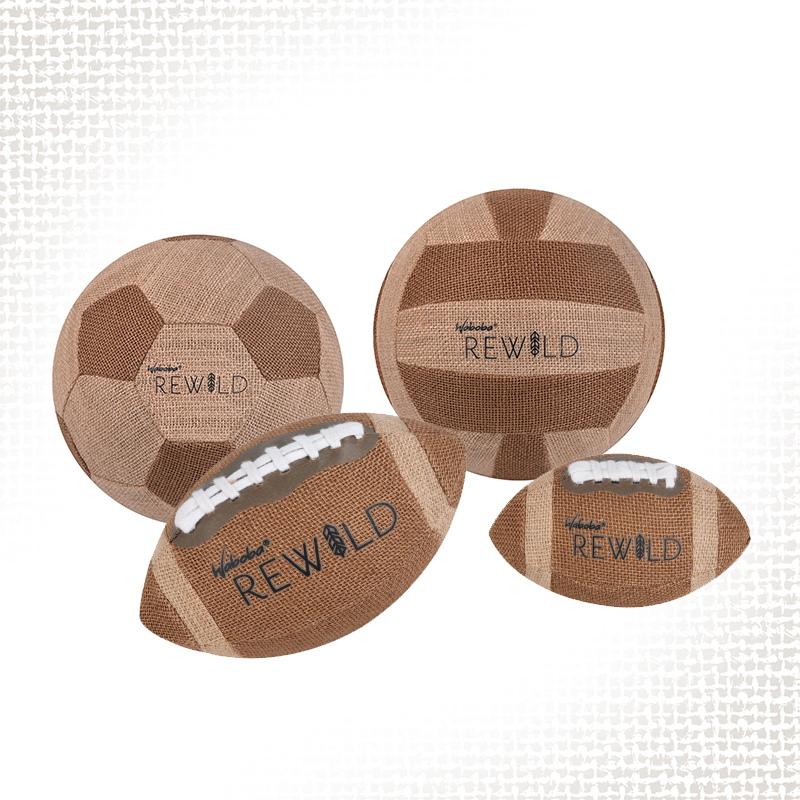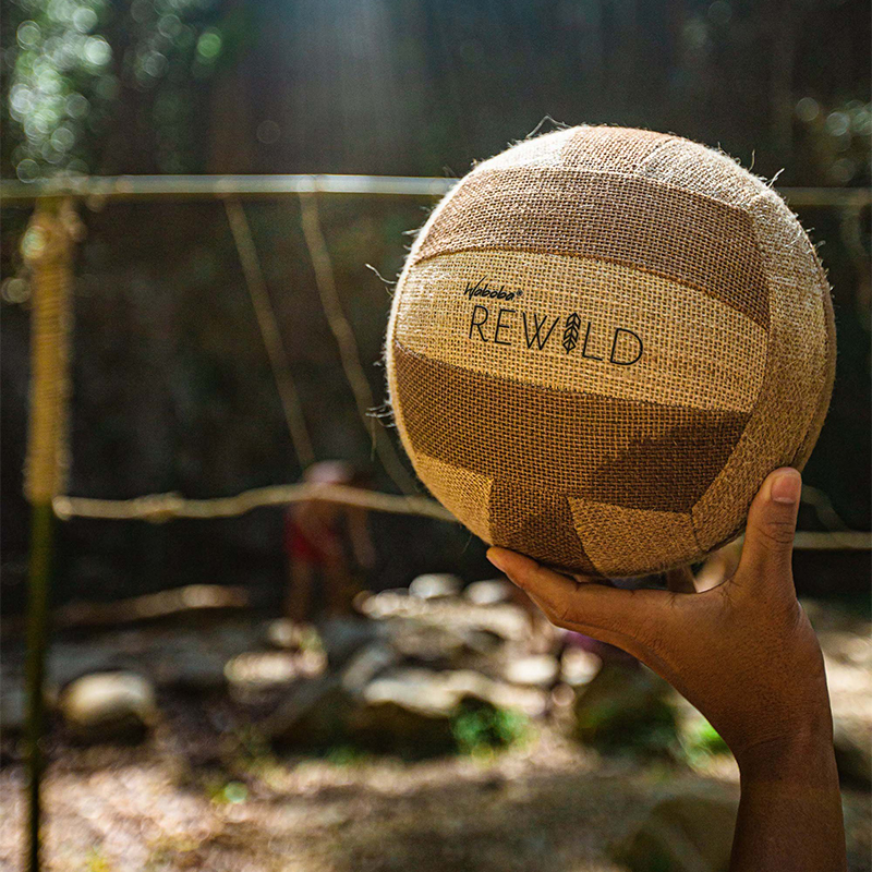 Palla da spiaggia e outdoor sostenibile realizzata con piante! Una combinazione di iuta, gomma naturale e legno.