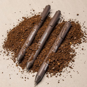 Questa penna è composta dal 40% di fondi di caffè, mescolata con il 60% di ABS. E la cosa divertente è che la penna ha persino l’odore del caffè!