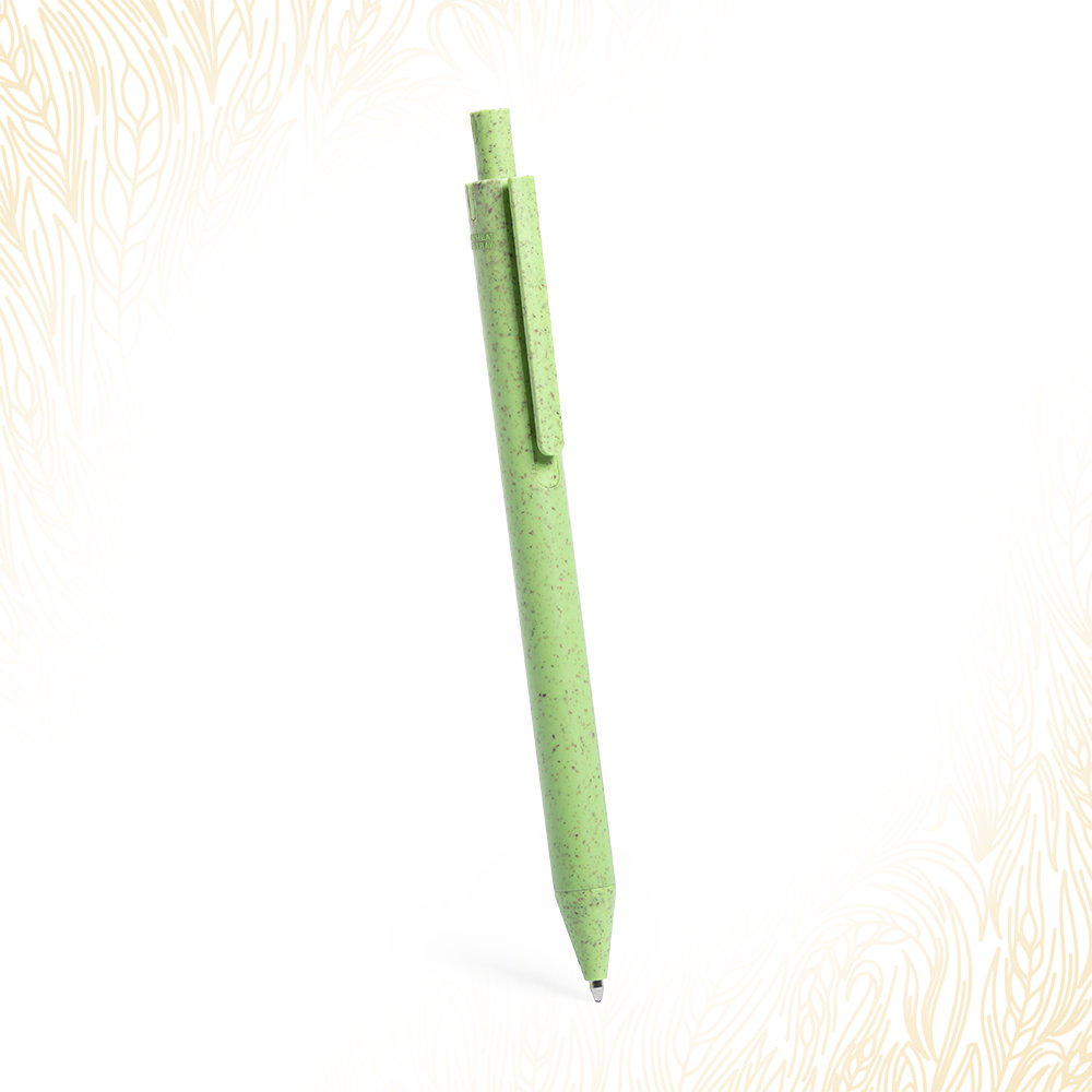 Penna con meccanismo a pulsante e fusto in fibra di grano e PP, per favorire l´utilizzo di materie prime naturali e ridurre le emissioni inquinanti.Clip con ampia area di stampa e refill blu.