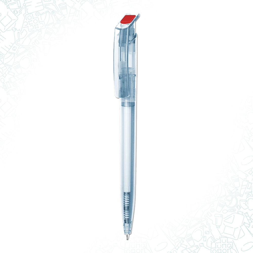 Penna in R-PET che nasce dal riciclo di una bottiglia di acqua da 500 ml. Personalizzabile a 360° sul corpo e a un colore sulla clip