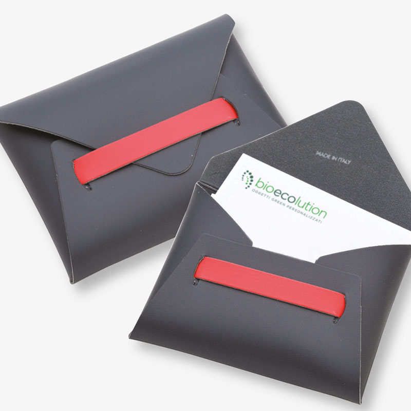 Elegante custodia porta carte e porta biglietti da visita. Realizzata in cuoio rigenerato di alta qualità e completamente Made in Italy. Morbida al tatto, elegante e sempre utile, senza dimenticarsi della cura dell’ambiente. Personalizzabile con stampa a caldo su cuoio di vari colori standard.