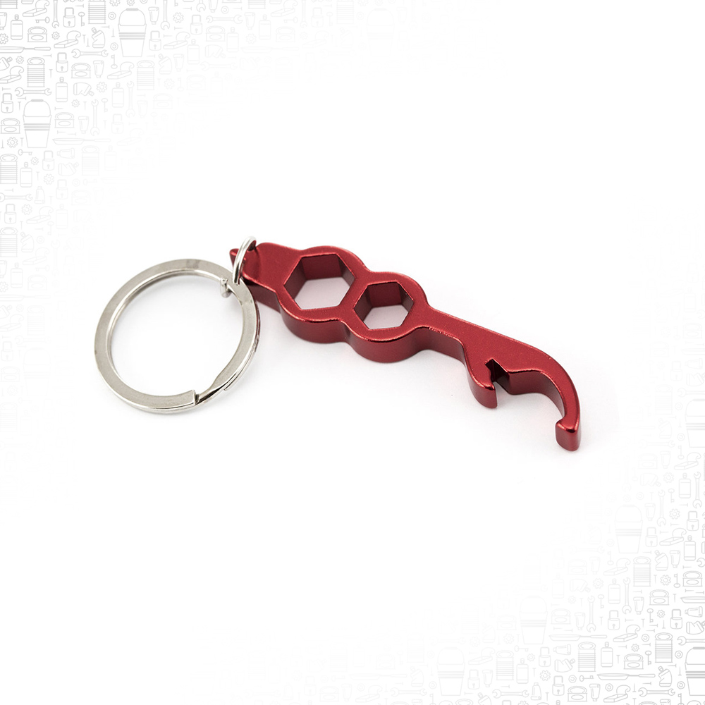 Portachiavi con apribottiglia in alluminio, con 2 chiavi per bulloni incorporate, progettato appositamente per la stampa laser. Confezionato singolarmente in polybag. Dimensioni: 2.5×0.7×10.5 cm