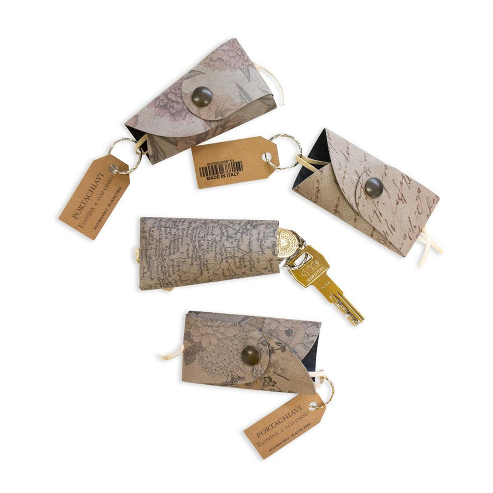 Portachiavi in Ecovinx. La sua capienza permette di contenere chiavi e telecomandi al suo interno, così da proteggere gli altri oggetti in borsa. L’Ecovinx è realizzato con cellulosa composta da fibre provenienti da scarti di lavorazione con certificazione FSC. L’effetto invecchiato e stropicciato della carta-tessuto è derivato da un particolare trattamento conciario. Ecovinx è il materiale con cui si realizzano le etichette dei jeans, è lavabile e resistente agli strappi e all’usura.