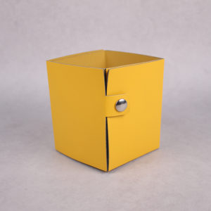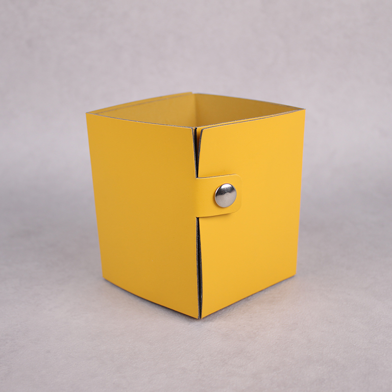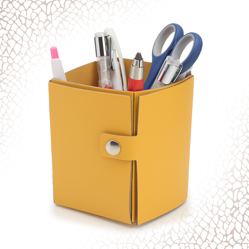 Portapenne in cuoio rigenerato, facile da montare e disponibile in una ampia gamma di colori. Comodo da tenere sulla scrivania, elegante nella sua versione morbida di cuoio rigenerato.