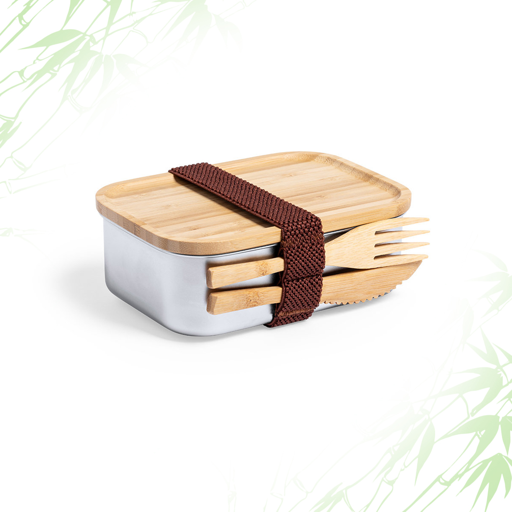 Coperchio e posate in bambù, con scomparto principale in acciaio inossidabile da 600 ml.