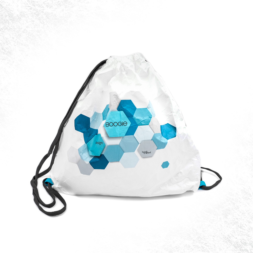 Sacca a strozzo 40x45cm in tyvek. Il tyvek fu inventato 50 anni fa. Tyvek ® è un materiale sintetico al 100% realizzato con fibre di polietilene ad alta densità . È ultraleggero ma durevole. Resiste agli strappi .