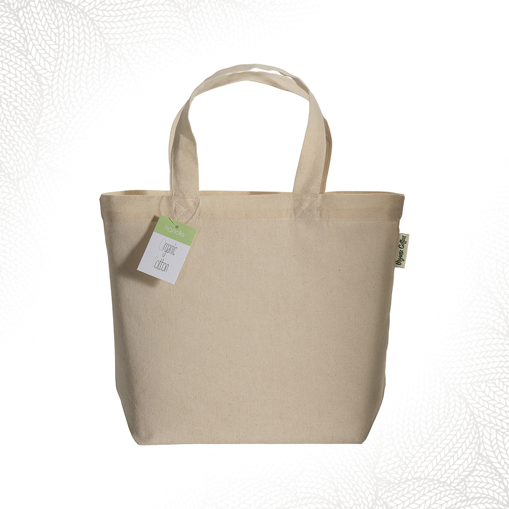 Shopper in cotone organico con manici corti e soffietto alla base – Misure soffietto 23×10 cm- questo shopper è comodissimo per oggetti ingombranti grazie al grande soffietto sul fondo