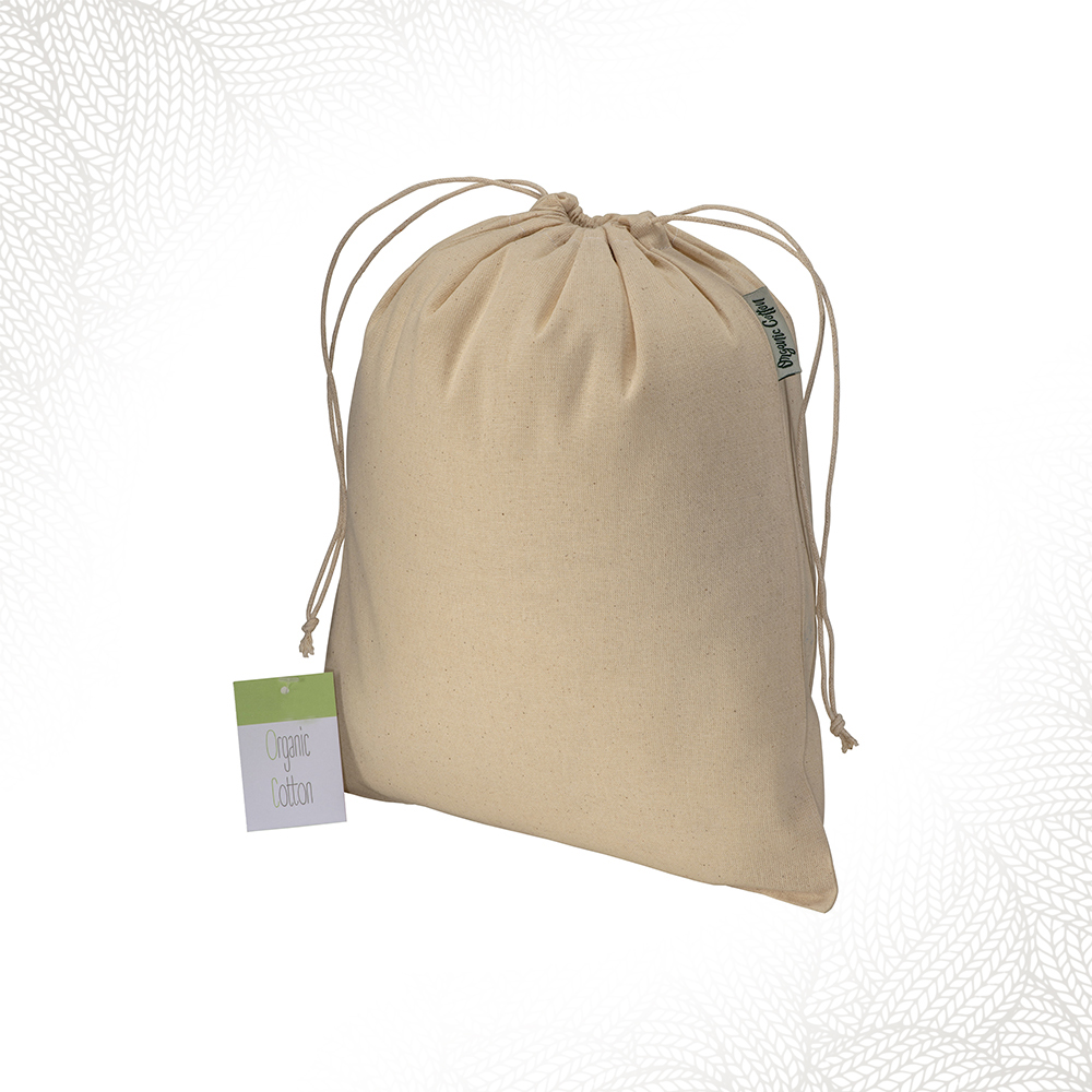 Sacchetto regalo in cotone organico con misure medie-grandi ideale per inserire oggetti e pensieri dal volume non ingombrante