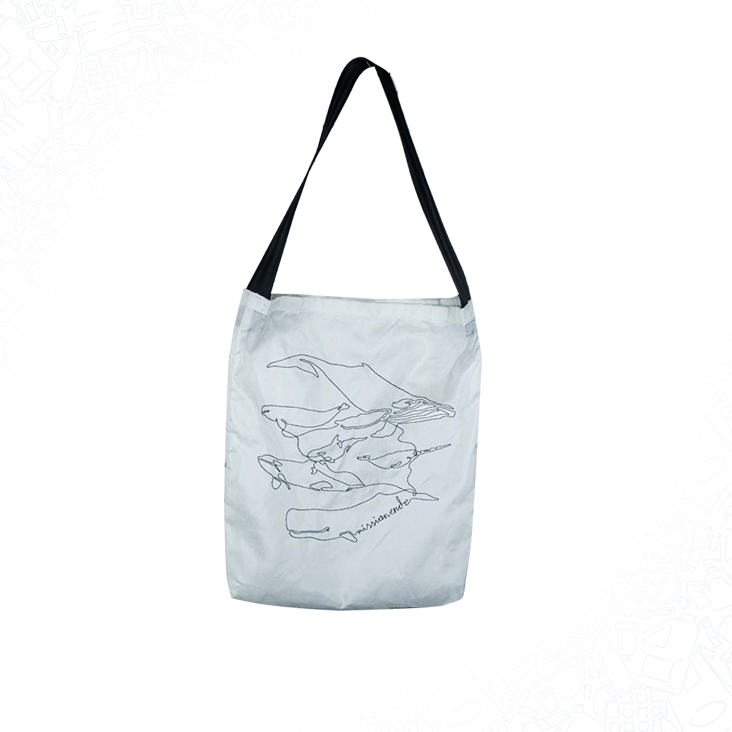 Borsa/shopper realizzata al 100% con il riutilizzo di materiale proveniente da airbag di auto demolite e con manici da recupero di cinture di sicurezza delle auto. Prodotta in Europa (Germania)
