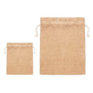 Piccola sacca in juta con cordino. Comoda per regali di piccole dimensioni. Disponibile in due dimensioni.