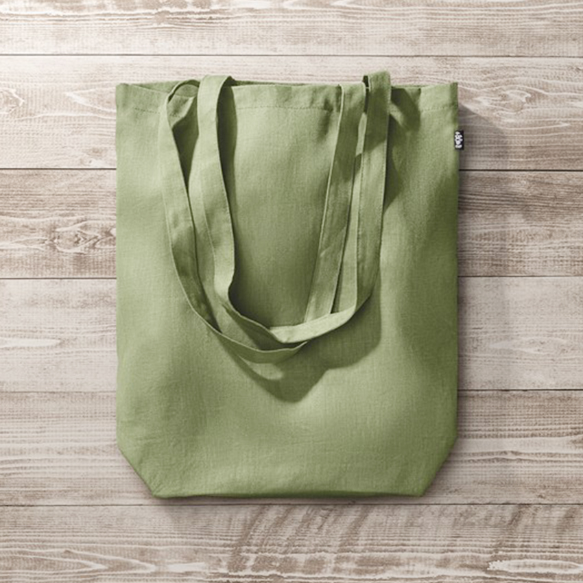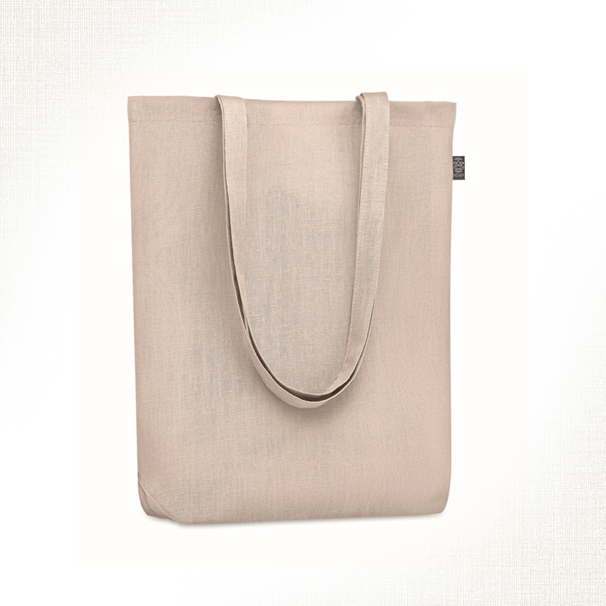 Questa shopper è realizzata al 100% in tessuto di canapa. La canapa è un materiale molto sostenibile e durevole perché viene coltivata senza l’uso di pesticidi. I lunghi manici ne facilitano il trasporto sulla spalla. Il soffietto sul fondo rende questa borsa ideale per trasportare la spesa quotidiana o altri oggetti. 200 gr / m².