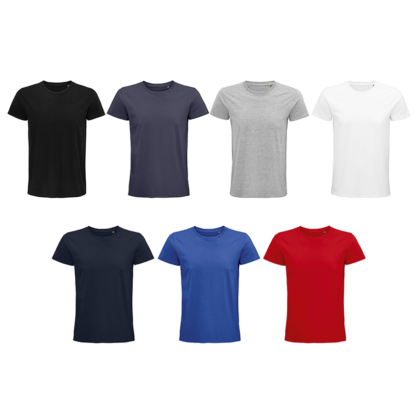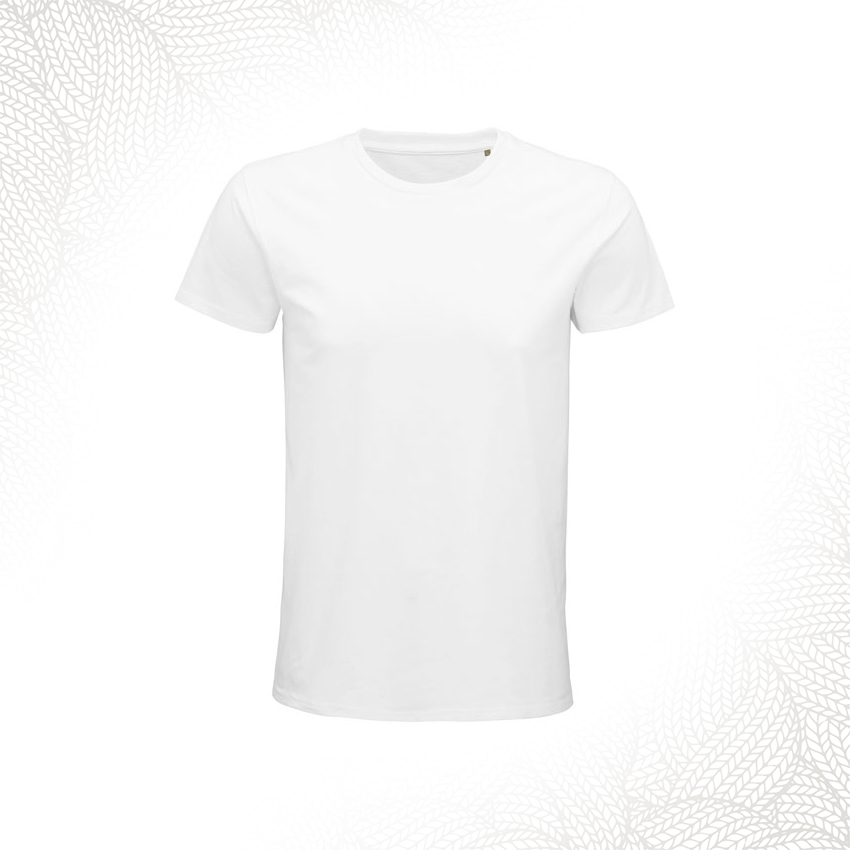T-shirt 175g/m², jersey 175, 100% cotone proveniente da agricoltura biologica, cardato leggero con trattamento ad enzimi, girocollo, nastro di rinforzo sul collo, taglio aderente, tubolare