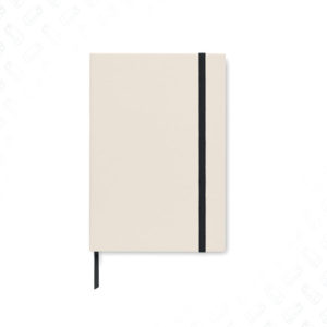 Rilegato con custodia. 160 pagine a righe (80 fogli da 80 g/m²) in carta riciclata. Cinturino di chiusura elastico, segnalibro a nastro.