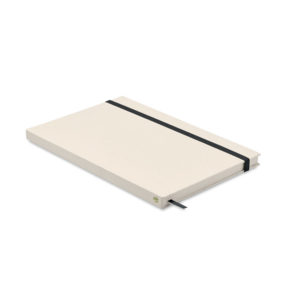 Notebook A5 con copertina rigida realizzato con il 70% di cartone del latte riciclato e il 30% di carta riciclata. Dimensioni: 21X14.5X1.3CM