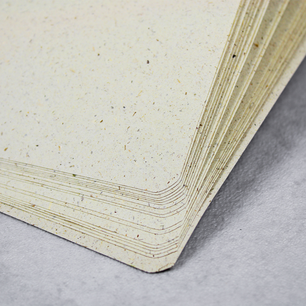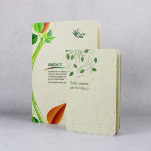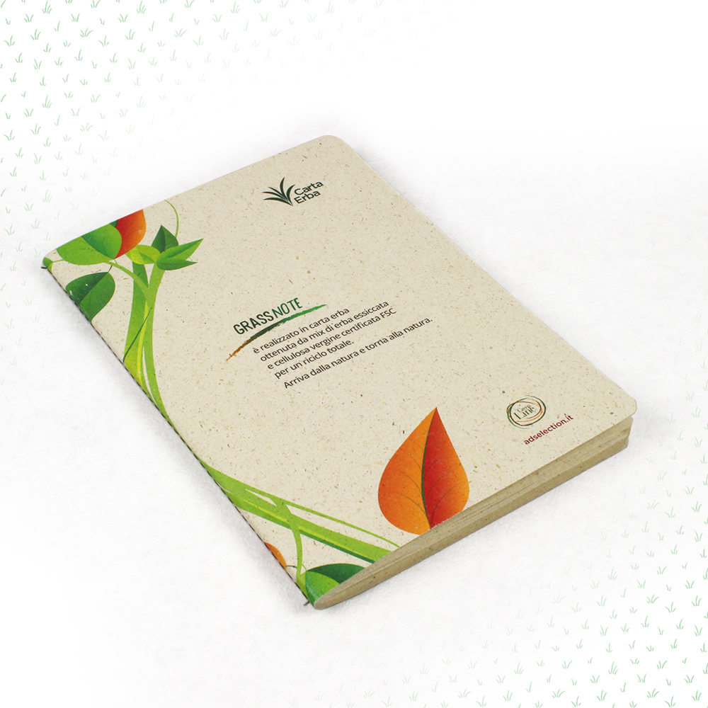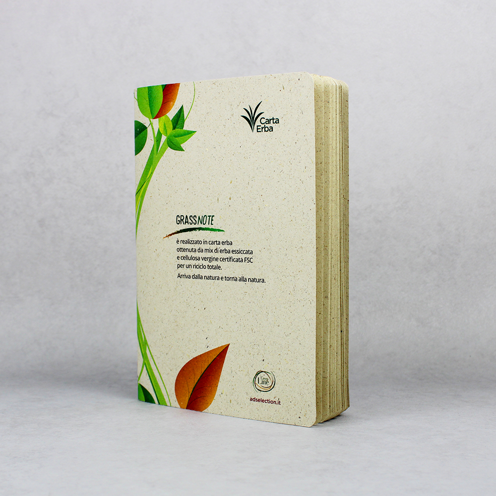 Taccuino realizzato in carta Erba. La carta Erba nasce da fibre di erba essiccata come materia prima per una carta dalla profonda sensazione naturale. Il prodotto è compostabile e riciclabile.